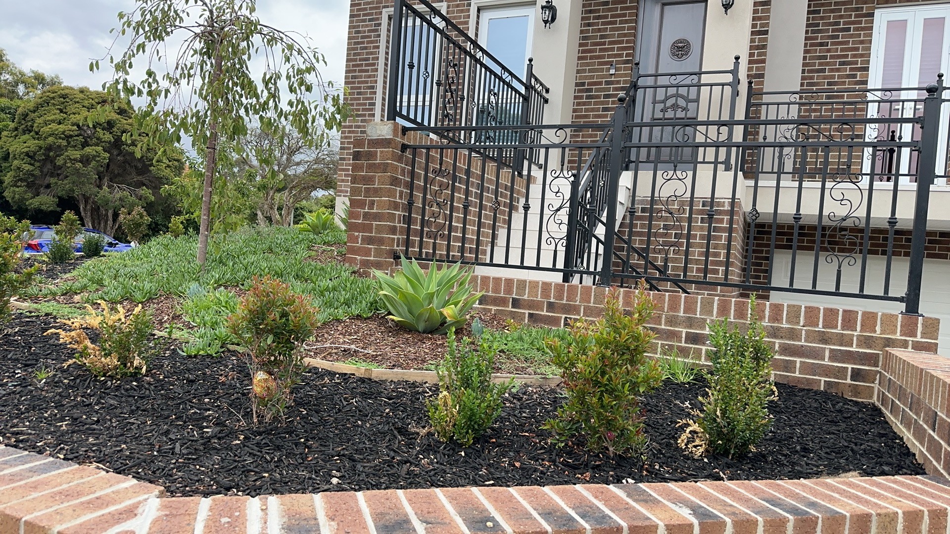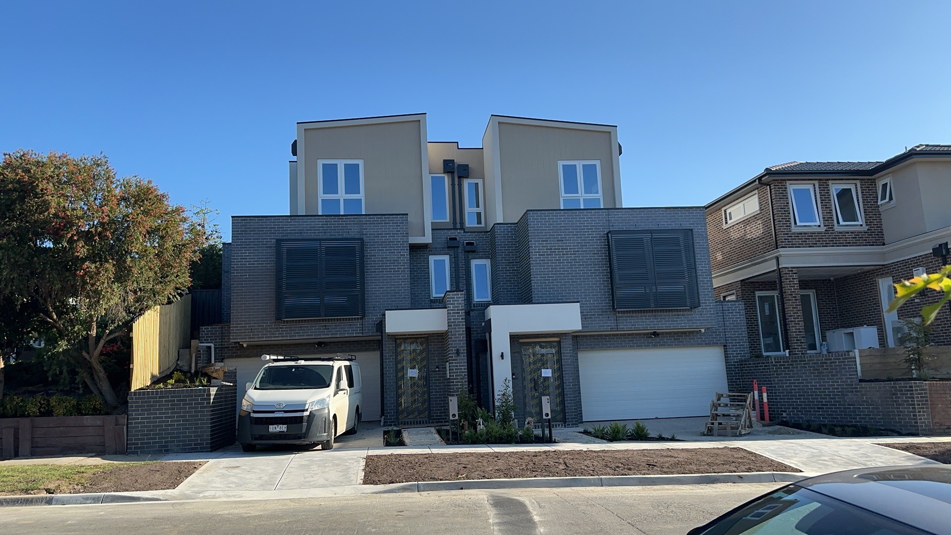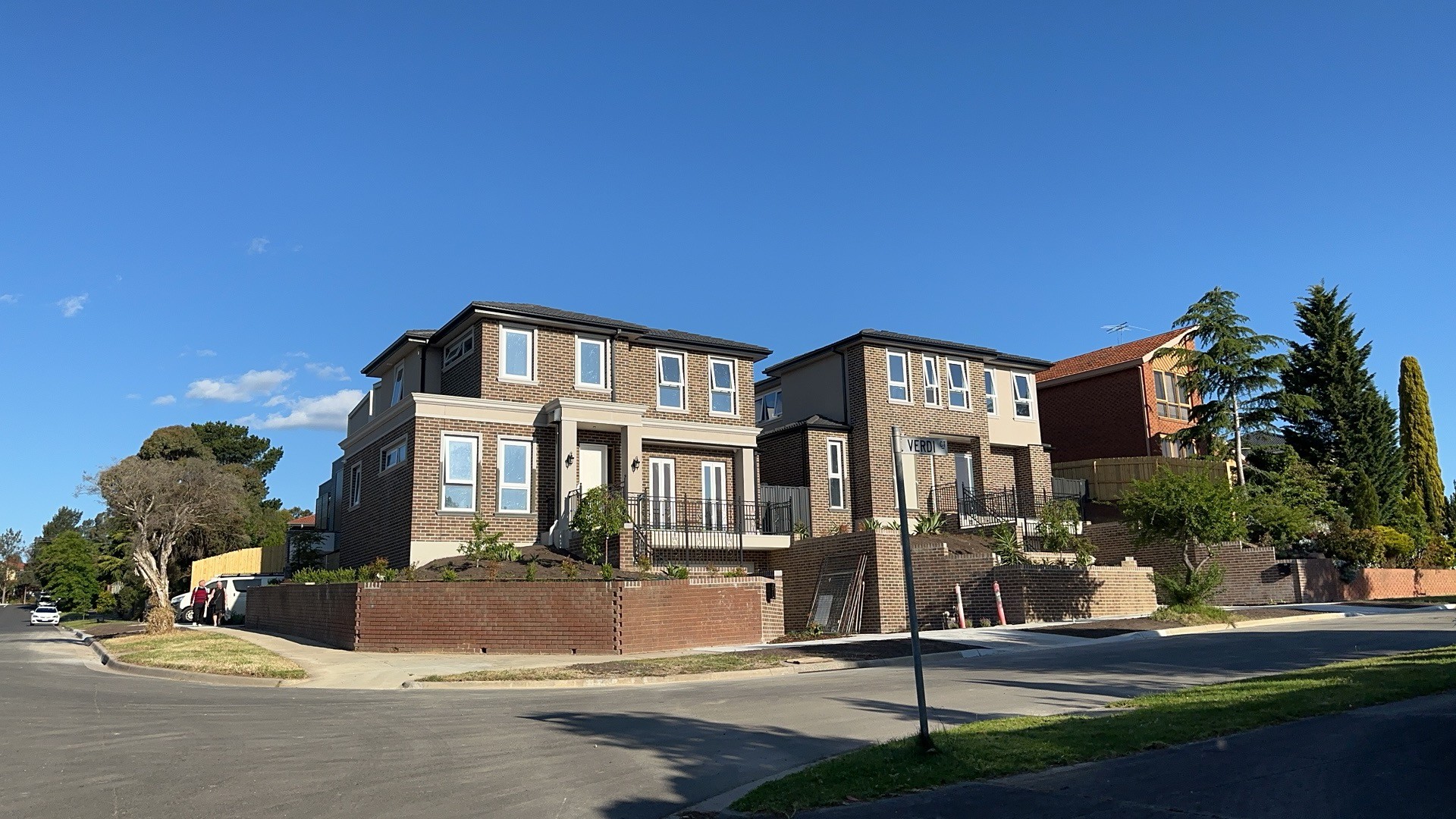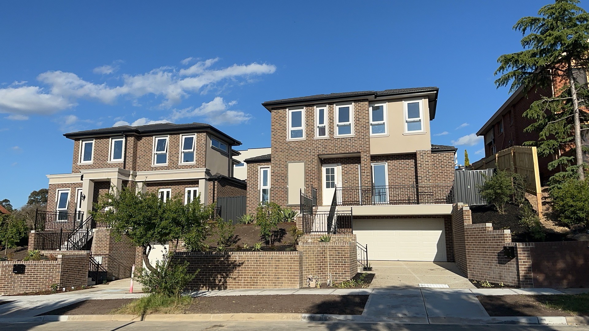 4 townhouses development, built on large hills and with 4 basement garage. very difficult construction with the slop. almost all the materials were handling by hand, one brick by another.